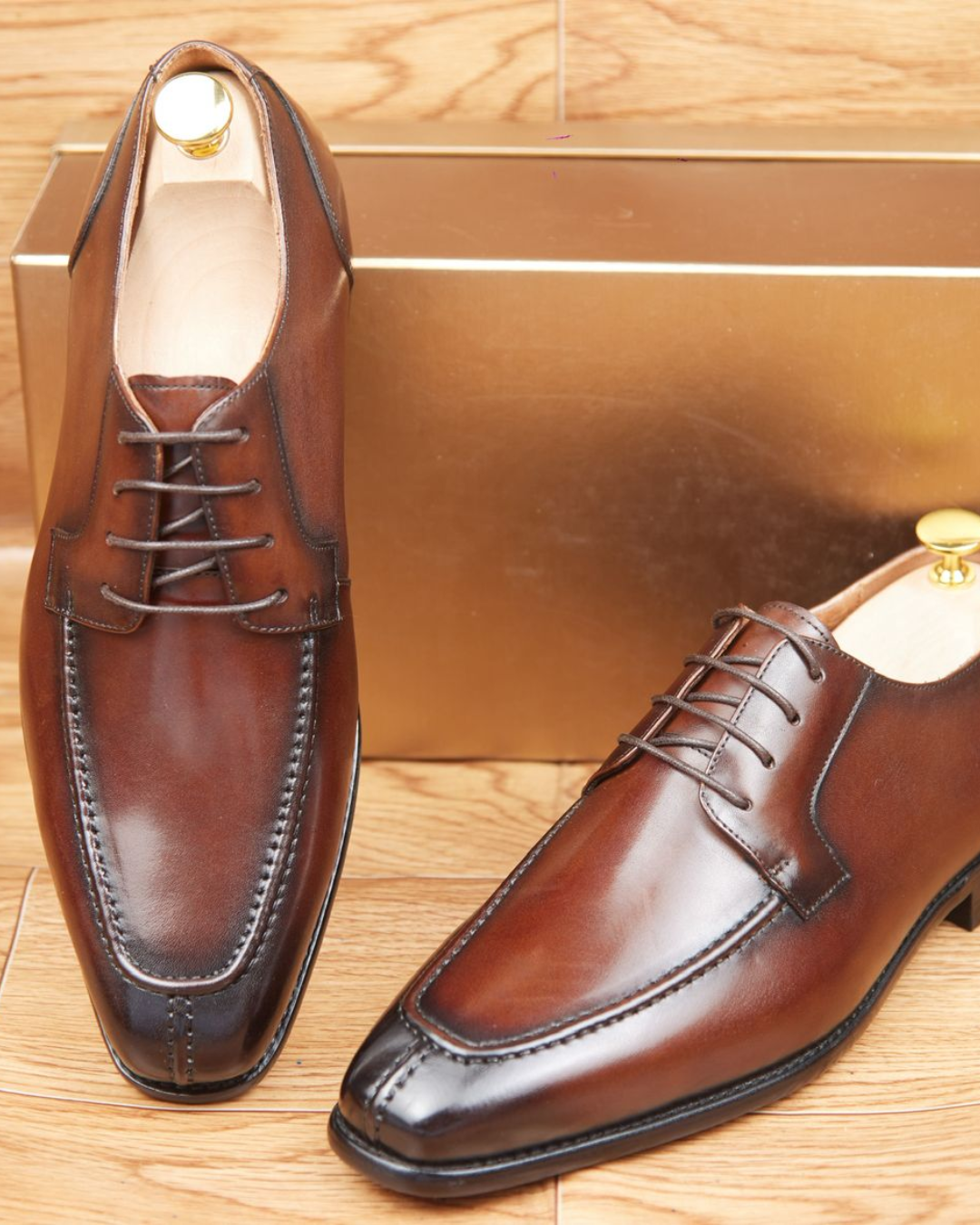 Derbies marron cognac en cuir lisse premium, élégance classique et polyvalente.