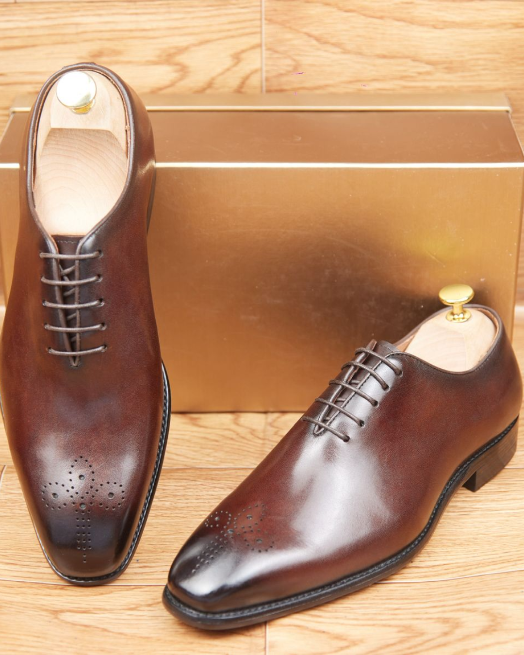 Richelieu Prestige Cuir Marron – Finition Patinée